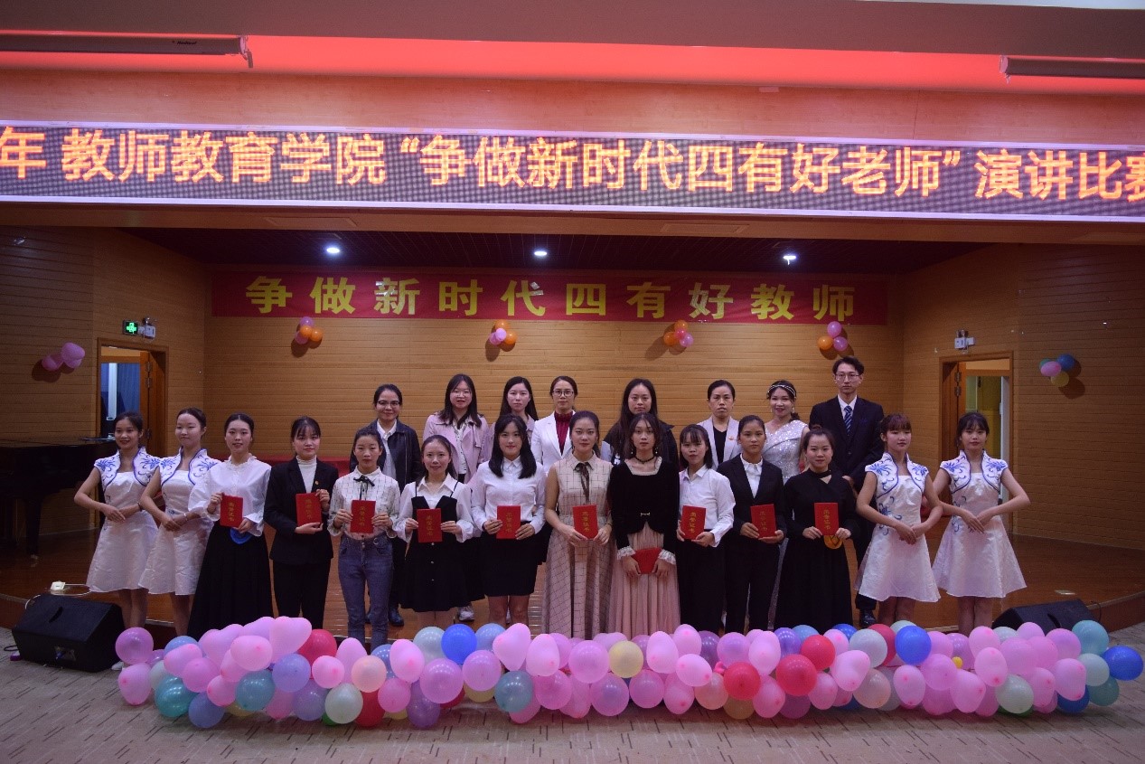 比赛中,选手们围绕“争做新时代四有好教师”的主题声情并茂的阐述自己的观点,赢得评委以及观众的热烈掌声。在第二轮的即兴演讲环节,选手们并没有被即时抽题和短暂的准备时间而影响,在赛场上展示出深厚的演讲功底,随之将比赛推向高潮。经过激烈的角逐,郑炜潆、陈雨同学获得决赛冠军!在经久不息的掌声中,决赛落下了帷幕。
