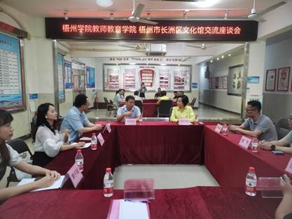 活动中分别参观了梧州市群众艺术馆、梧州市长洲区文化馆的环境并与单位领导和负责人召开座谈会,就学院音乐、舞蹈专业员工实践、实习及就业的相关工作进行了深入交流与探讨。单位负责人表示会大力支持在校生的实践、实习工作,积极构建员工成长平台。